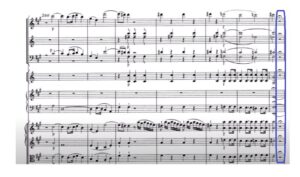 - Bach’s Mass in B Minor (Kyrie Eleison bar 102 – 07 ’24’): The soprano II, tenor and bass lines sustain their notes differently from the lower voices, cadencing on the third beat of bar 102, requiring independent fermatas to guide phrase endings. While the rest of the voices, like the Alto, cadence in the next bar) and the soprano I cadenced in bar 101 (a bar before)