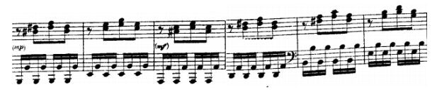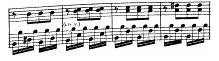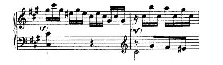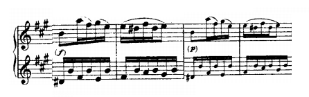 Immediately after we can find a passage that demands a lot of finger dexterity to be played in accurate manner, with crisp sound and graceful intention. That passage will lead us into a long sequence development. The first two bars are in the key of C#.