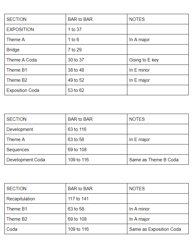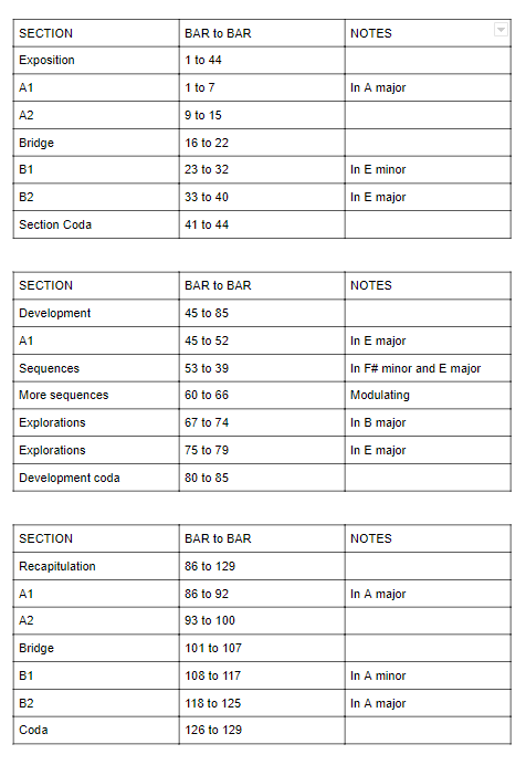 Overall, so far we play very little on A major. Most of the piece was unstable and in constant movement. The fifth degree, E major, is very important all the way through, as a destination key but also as the journey itself.
