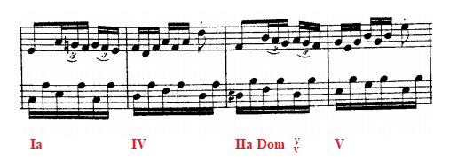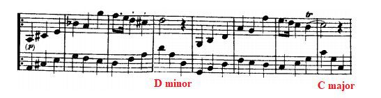 In the second part of the trio we have a little 4 bar sequence twice: the first time going to D minor (the IV grade of the key) and the second time going to C major.