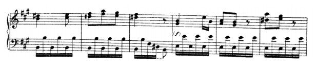 Haydn repeats these two bars many times going through many keys, such as: