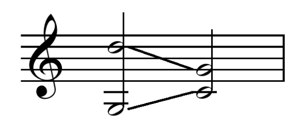 Vertically, we will avoid these movements between voices, as they deprive of independence to the melodic lines. In both cases, we would be losing a voice, as the two will be perceived as one, which will defeat the primary purpose of Counterpoint. Here are some examples: